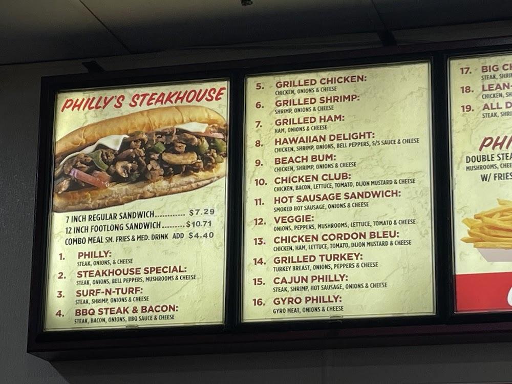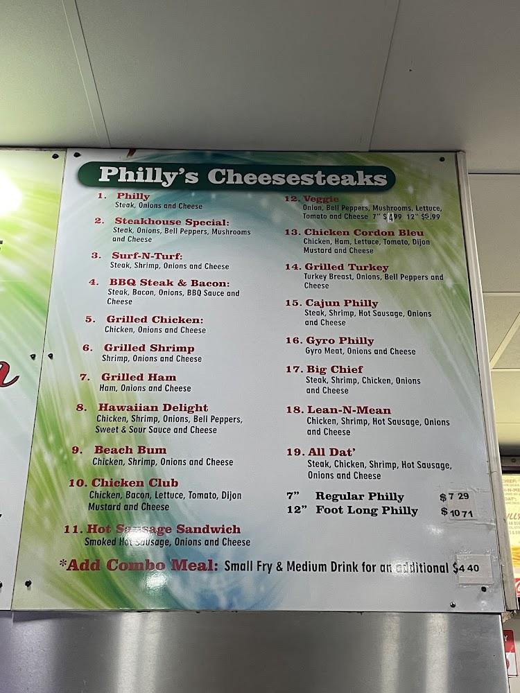 The menu at Philly's Steak House focuses on cheesesteaks as the star. Signature options include the Cajun Philly and the Lean and Mean, which packs a punch with various meats. For those seeking lighter fare, grilled chicken and veggie sandwiches offer satisfying alternatives. Sides like onion rings and seasoned fries round out the meal perfectly. Desserts may not take center stage, but guests often recommend indulging in a quick sweet treat from nearby. The menu keeps it cozy and simple, catering to local tastes with favorite seasonings and preparations.